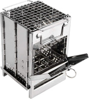 Cook, boil, and grill anywhere with this compact 304 stainless steel folding camp stove. The cuboid frame creates a sturdy cooking platform while the top grill grate lets you sear or set on a pot. Burn what you find, twigs, branches, leaves, sawdust, wood, charcoal, or solid alcohol, so you’re never hunting for special fuel. It sets up in minutes, packs flat into the included storage bag, and even comes with a pocket wire saw for cutting small branches and deadfall. Ideal for camping, backpacking, overlanding, beach BBQs, and emergency kits.