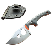 Sheath: form-fitted, clip-on, includes ceramic sharpener & ferro rod