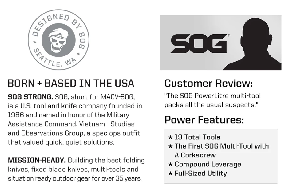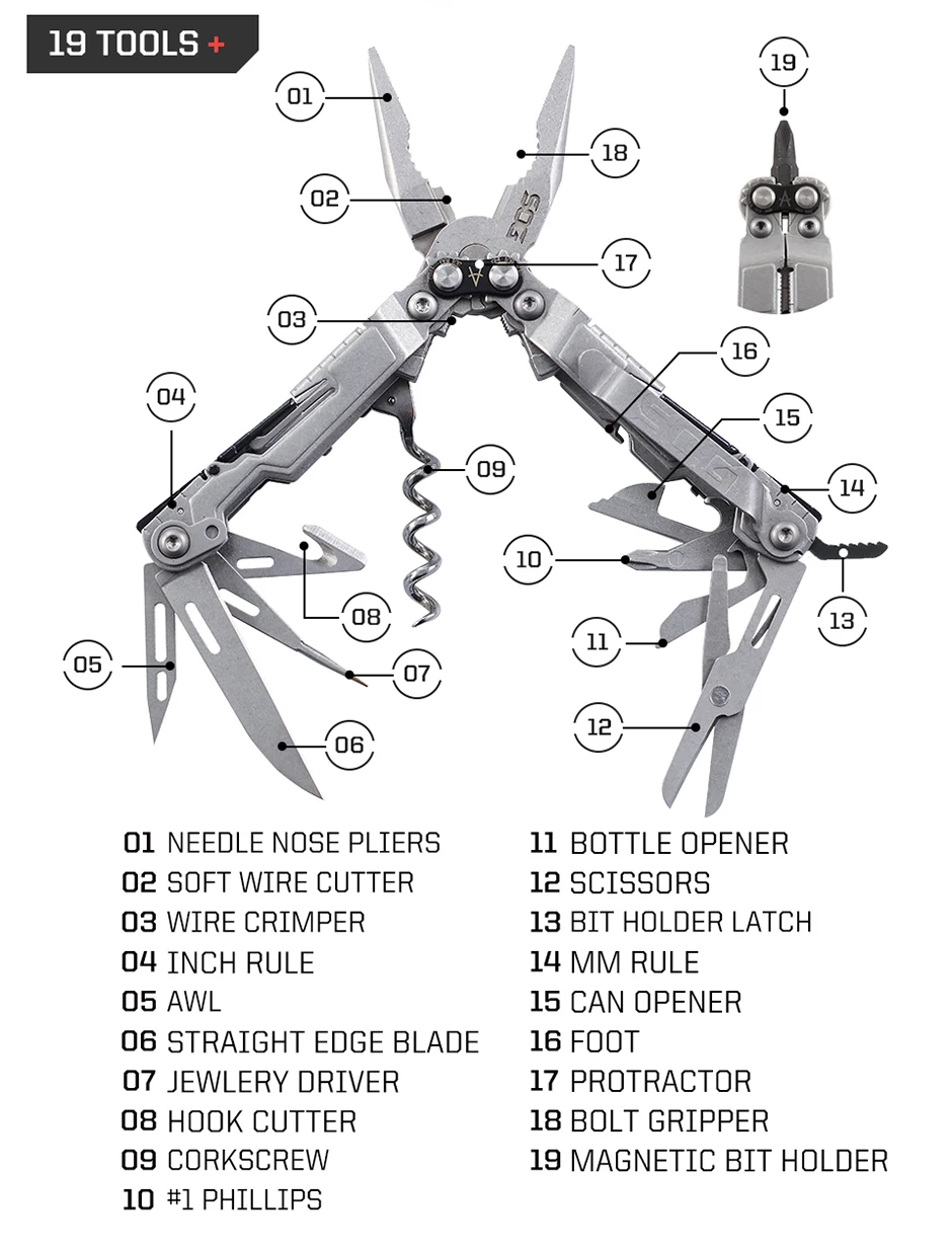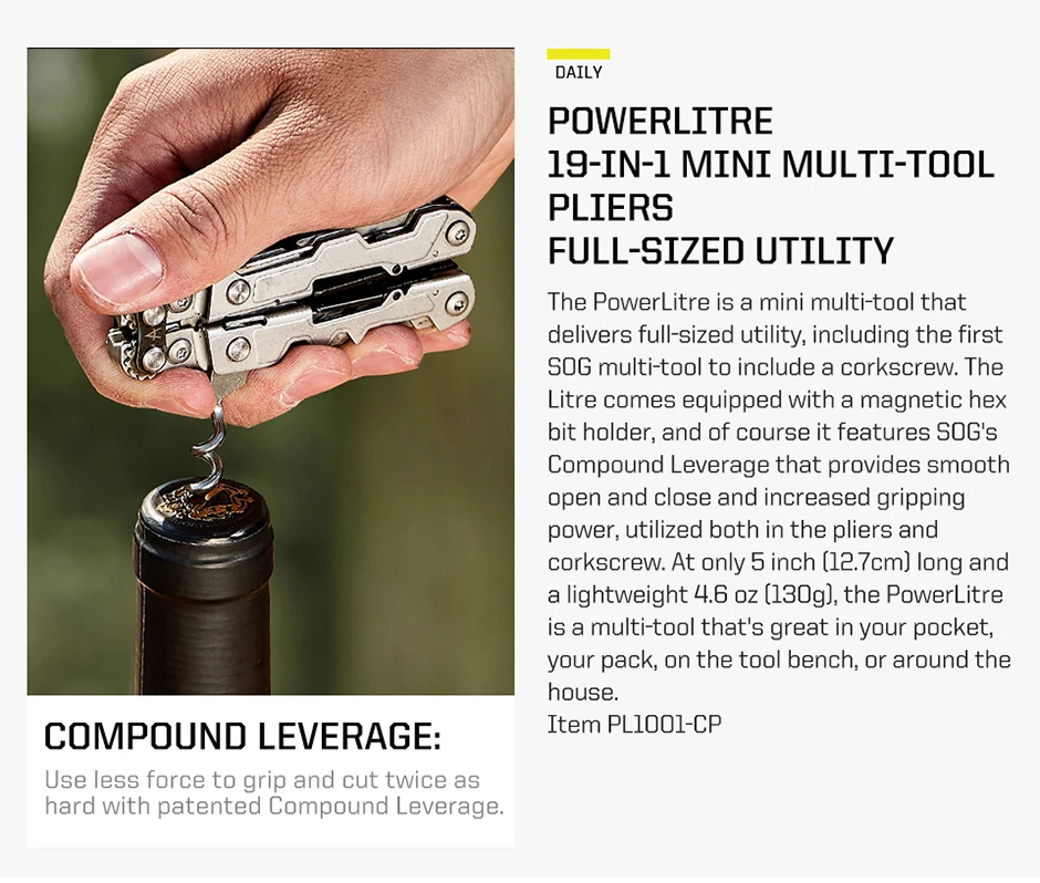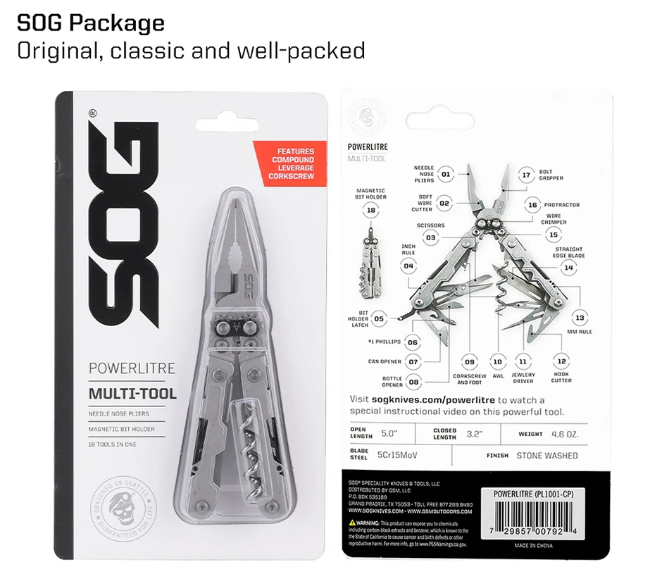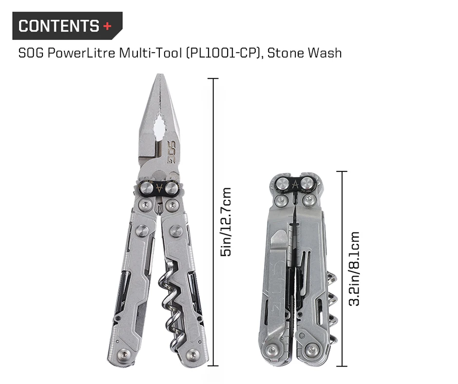 SOG 19 in 1 PowerLitre Folding Pliers Knife EDC Mini Multi-Tools Pocket Scissor Portable Outdoor Survival Multitools PL1001-CP - PL1001-CP / 5 Inches