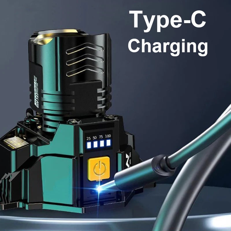 Rechargeable Waterproof LED Induction Headlamp – 180° Beam, Type-C Charging, Multi-Mode Outdoor Headlight | BasicSurvivalGear.com