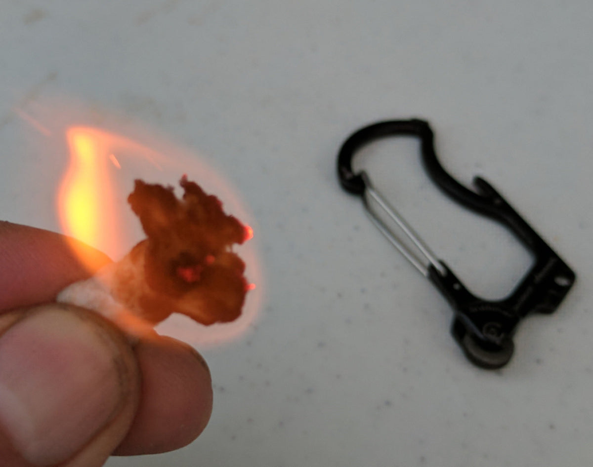 For best results, spread open the fibers at one end to expose the thin inner fibers and easily light from a simple spark of the Firebiner. Pull fibers gently to keep the TinderQuik intact.